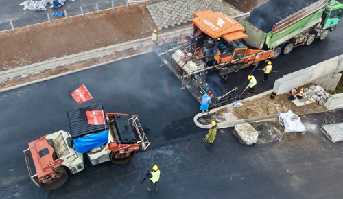 建設過程,為確保瀝青路面施工品質,項目團隊嚴格把控原材料質量、拌合、運輸、攤鋪、碾壓等各個環(huán)節(jié),并積極引入新技術、新工藝,將智能建造、數(shù)字化施工管理系統(tǒng)應用于現(xiàn)場,對路基壓實度、橋梁結構強度、鋼筋保護層厚度、路面攤鋪厚度與平整度等關鍵指標進行全過程實時監(jiān)控,確保每道工序、每個環(huán)節(jié)都符合設計規(guī)范與高質量要求。通過優(yōu)化施工工藝,強化現(xiàn)場管理,有效保障工程進度和質量安全雙達標。