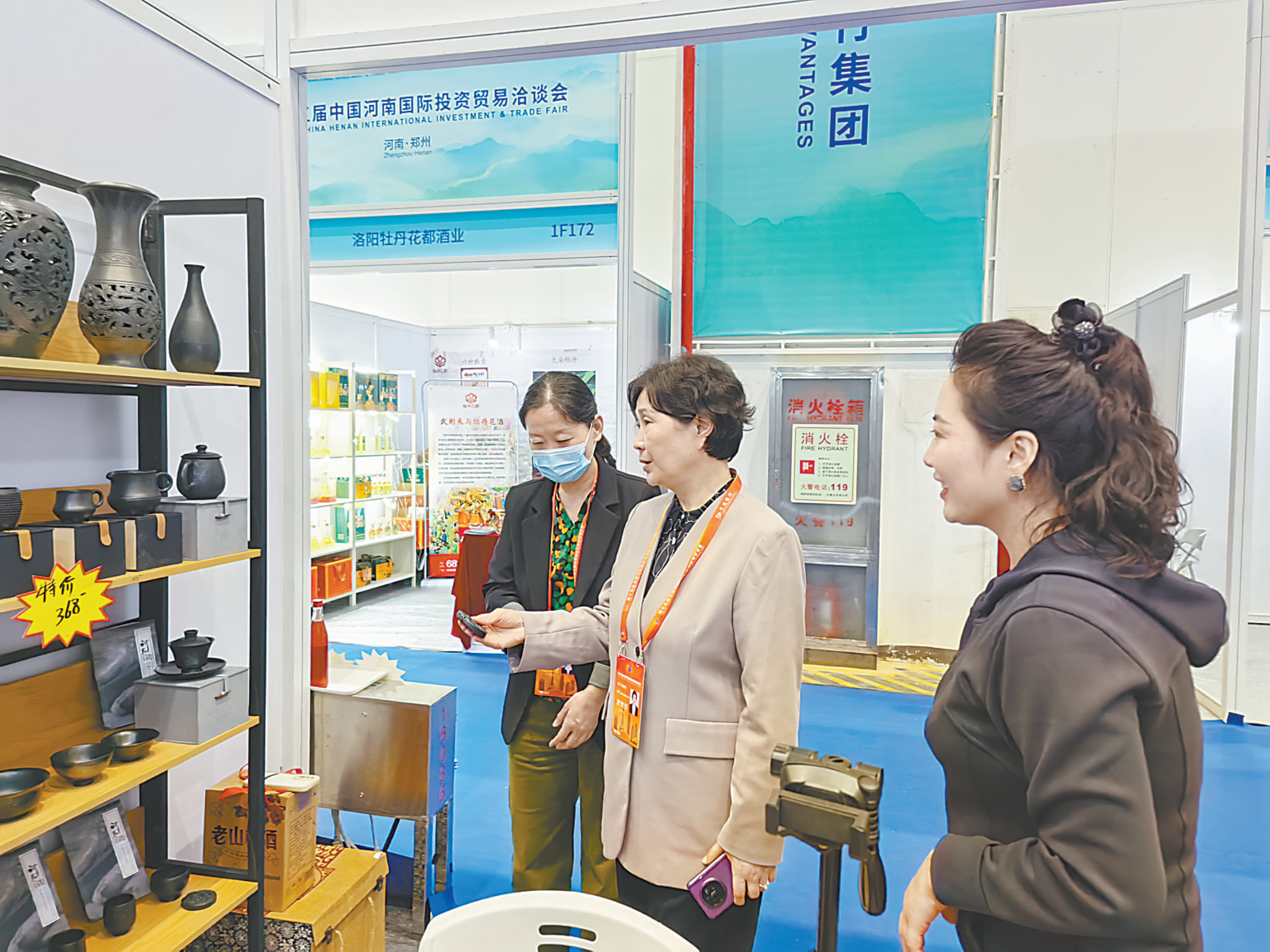 9月27日,市婦聯(lián)領(lǐng)導(dǎo)在第十五屆中國河南國際投資貿(mào)易洽談會上,看望慰問神農(nóng)陶文化創(chuàng)意公司、太極莊商貿(mào)公司和山陽繡莊三家“婦字號”參展企業(yè),為巾幗創(chuàng)業(yè)者鼓勁賦能。